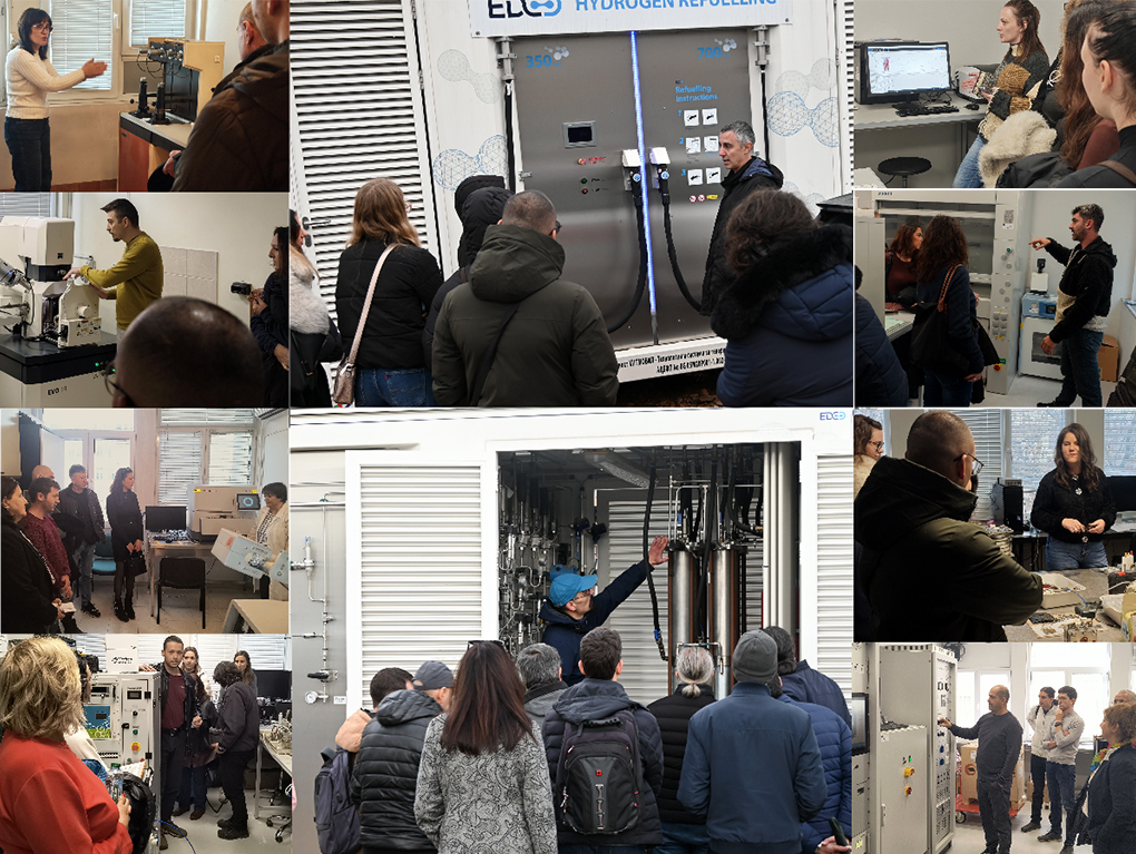 В другата част на практическото обучение участниците посещаваха на групи лаборатории на ЦК „Хитмобил“ в ИЕЕС-БАН, където учени демонстрираха експериментални и аналитични изследвания, свързани с охарактеризиране на материали, изпитване на готови водородни преобразователи и разработване на иновативни водородни генератори, компресори, горивни елементи и други електрохимични системи.